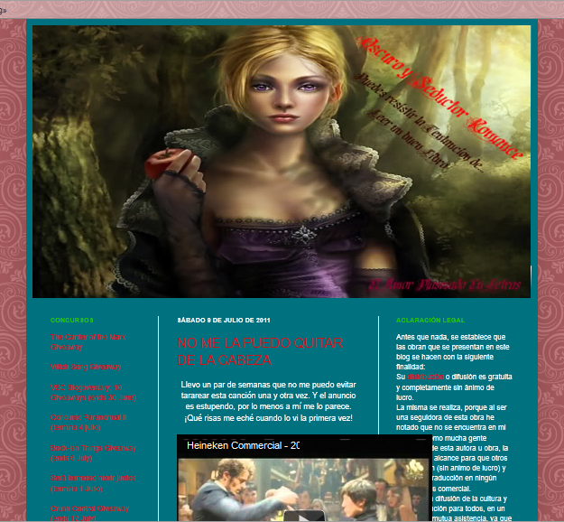 Temática del blog: Libros de temática juvenil, romántica, histórica y otros géneros. Muestro entrevistas, noticias de actualidad, reseñas de libros, películas que me gustan, etc.